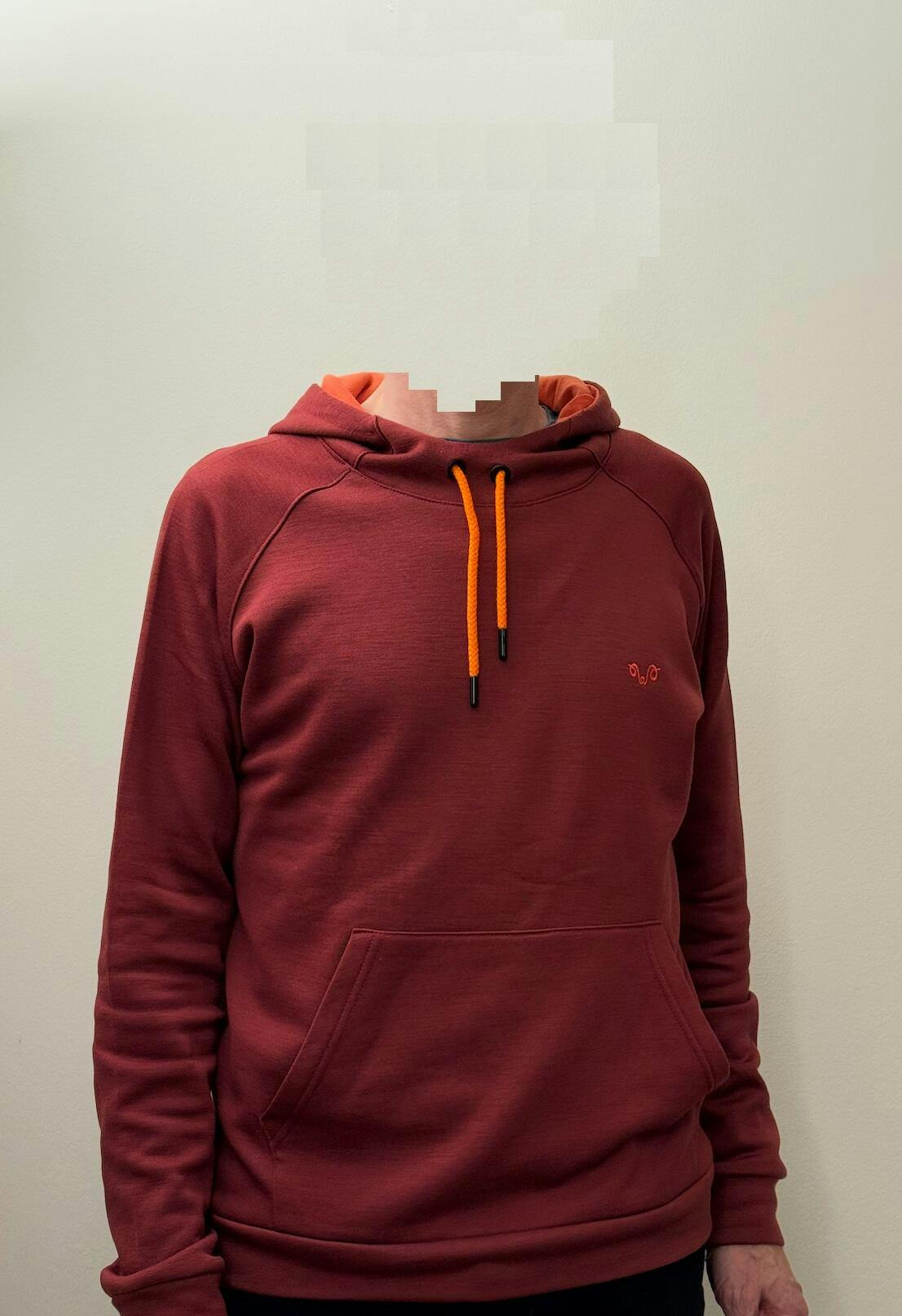 Das Bordeaux Rot sieht recht edel aus, mit einem leichten Glanz. Am Anfang war es noch minimal am einen oder andern Ort etwas knapp, aber der Hoody passte sich in der ersten Woche dann optimal an.